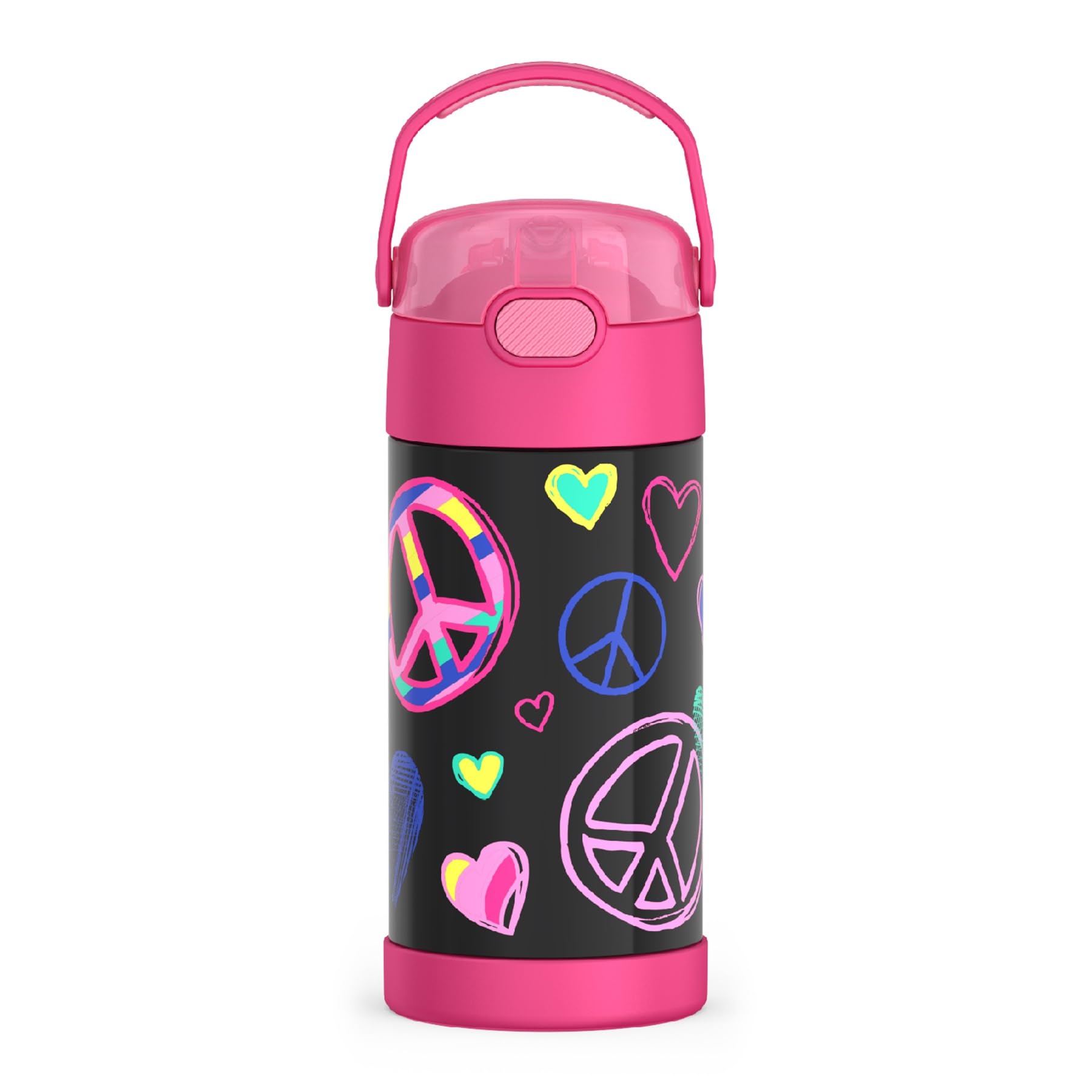 THERMOS FUNTAINER Water Bottle with Straw - 12 Ounce - Kids Stainless Steel Vacuum Insulated Water Bottle with Lid, Peace