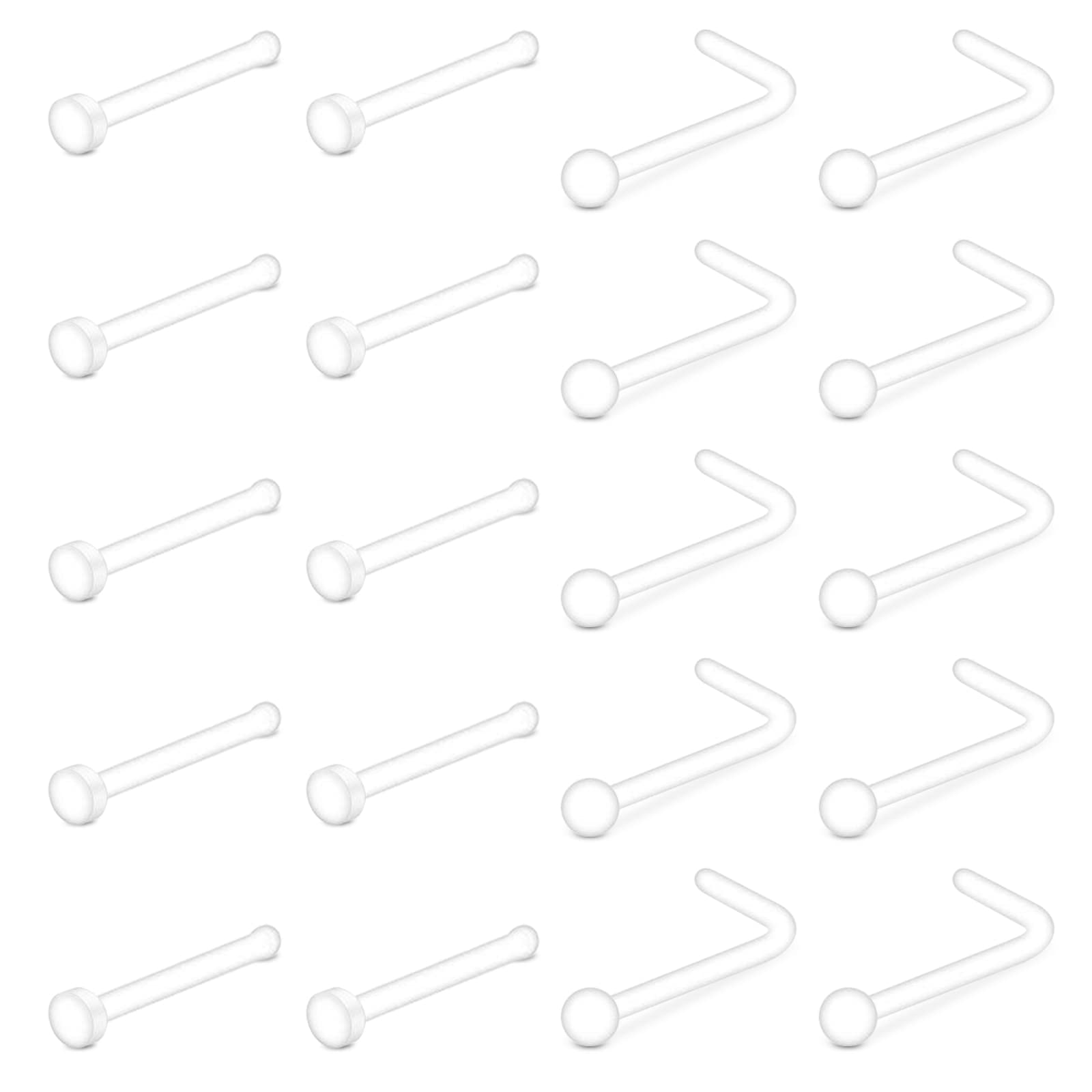 D.Bella 18G 20G Clear Nose Studs Acrylic L Shape Nose Rings Bioflex Bone Pin Straight Nose Studs Flexible Nose Piercing Retainer Flat Top for Men Women