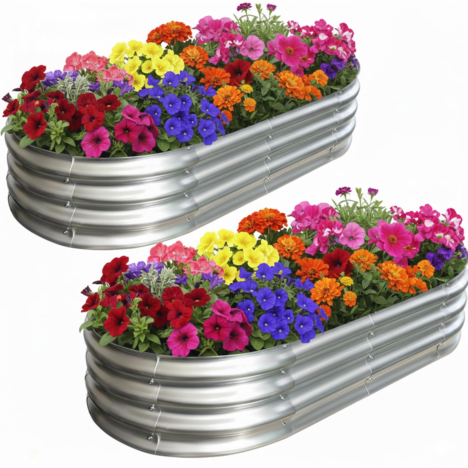 Eclaron Raised Garden Bed Kit,4x2x1ft Galvanized Planter Box Outdoor with Safety Edging,Rust-Resistant Garden Bed - Oval Large Metal Raised Garden Beds for Vegetables…(2 Pack)